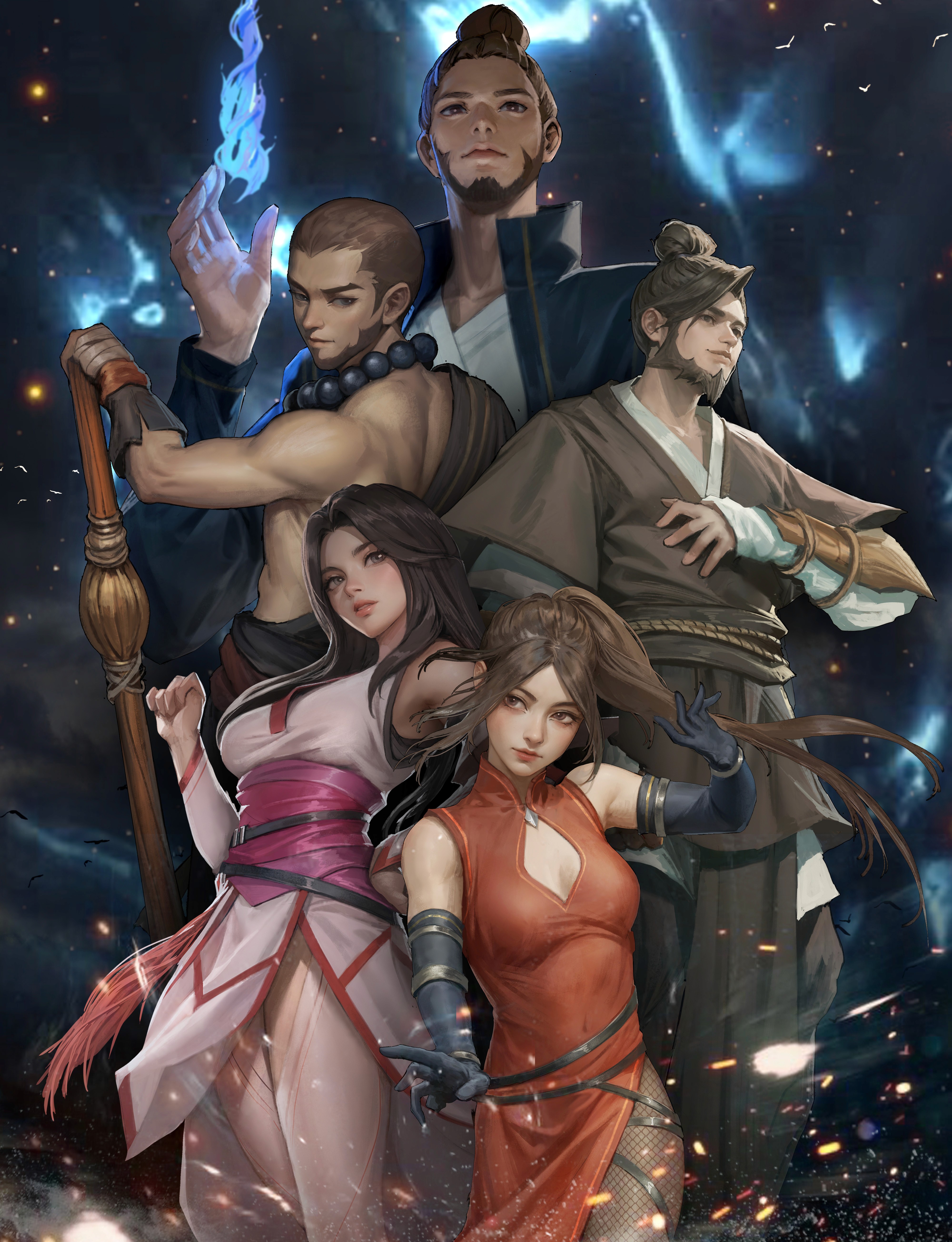 Each character blends aquatic grace with cultural motifs, reflecting elegance, strength, and serenity through flowing forms and symbolic color palettes.